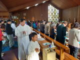 今日は朝から復活祭後のパーティの準備でたくさんの方がお手伝いして下さいました。 心より感謝いたします。 復活のごミサの間に聖堂では洗礼式があり、晴れてお一人が私たちカトリック教徒の仲間入りを果たしました。教会は例年よりたくさんの人でにぎわっていました。 ごミサ終了後は、待者の女の子が笑顔でイースターエッグを配ってくれました。 |