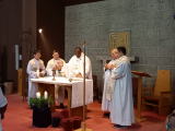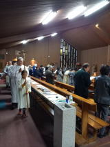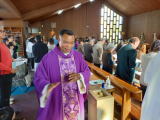 ![]() 駐日教皇大使エスカランテ・モリーナ大司教様を迎え、クラウ神父様との共同司式でミサが行われました。 木更津教会へ、五井教会、館山教会、鴨川教会、山手教会、イグナチオ教会等遠方からも足を運んでいただき、 また多国籍の方々と共にミサに与ることができました。 ミサ後のパーティーは大盛会で親交を深めることが出来ました。 「追悼願い」を奉納し、昨年11月の追悼ミサ以降に帰天された方のお名前を読み上げられました。 ミサ終了後、君津市営聖地公園内 「カトリック木更津教会共同墓地」へ墓参し、祈りを捧げました 。 ![]() ミサ後、敬老の祝いの茶話会に36名の方が参加され、クラウ神父様のお話と希望者にむけて「病者の秘跡」が行われました。 ![]() ![]() ![]() ![]() 一品持ち寄りで多国籍料理の数々を味わい、神父様への質問コーナーでは神父様の側面を知ることができました。 ![]() 勉強をして3人の子どもたちが初聖体を受けました。 ![]() 本日より、4月21日付けで木更津・鴨川・館山教会主任司祭として着任されたジャン・クランケン神父様の司式ミサ。 ![]() 佐藤神父様は、木更津教会の協力司祭としての最後の司式。2年間、東京から始発の高速バスで通って下さりありがとうございました。 ミサの中で洗礼式が行われ、新しい仲間が増えました。また、ミサ後にはティエン神父さまのメッセージが入った カードとご復活の卵が配られました。マリア館でお祝いの持ち寄りパーティーがあり、ベトナムにスリランカ、フィリピン料理と 国際色豊かな料理の数々を楽しみ味わいました。 ![]() ![]() 主任司祭ティエン神父様は、五井教会・木更津教会・館山教会を兼務してくださり、ベトナムj籍の信者さんが増え木更津教会の 仲間になりました。聖週間の司式をありがとうございました。館山教会の信者さんも来てくださいました。 ![]() ![]() ![]() ![]() ![]() ![]() 枝の準備 ![]() 浦野神父様の司式ミサ。1年間、木更津教会に毎月来て下さりありがとうございました。 ![]() カブンディ・オノレ神父様(淳心会)をお迎えし、四旬節黙想会(「講話」と「許しの秘跡」)が行われました。 講話内容は「苦しみの中に共にいて下さる神様への希望と祈り」で、恵みある時間をいただきました。 ![]() ![]() アンドレア・レンボ補佐司教様の司式ミサ。ベトナムの方達による聖歌隊の美しい歌声。