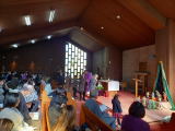 東日本大震災を中心とした大変有意義な黙想会でした。 神父様の悲惨な戦争体験と重なり、テレビの映像を見て胸を痛めたそうです。 出席者は60名を超え、大盛況の黙想会でした。 幼少の頃の貧しさや神父になった経緯については、ユーモアを交えてお話して頂